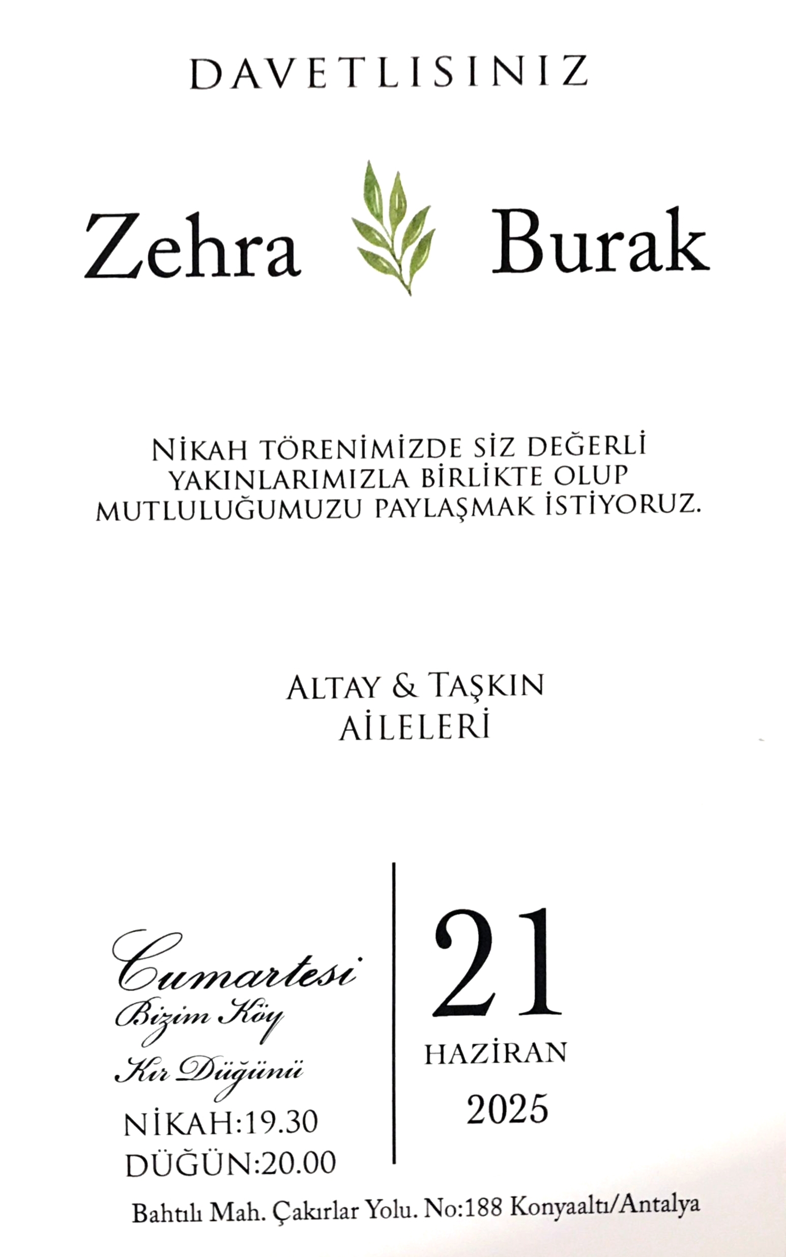 Zehra Altay ile Burak Taşkın'ın düğünü